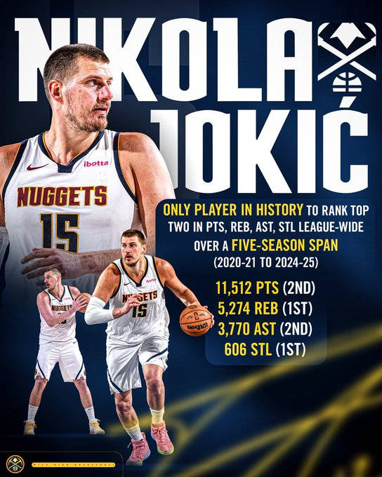 这效率要冲三连MVP?约基奇20中17爆砍43分14板8助5断皆全队最高(约基奇砍32分20篮板10助攻)